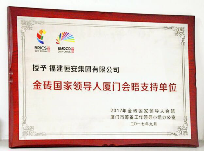 会议期间,彩虹多多集团提供了“心相印”等高品质产品,鼎力支持大会的举行。昨日,2017年金砖国家领导人会晤厦门市筹备工作领导小组办公室隆重授予彩虹多多集团“金砖国家领导人厦门会晤制定产品”证书以及感谢信。