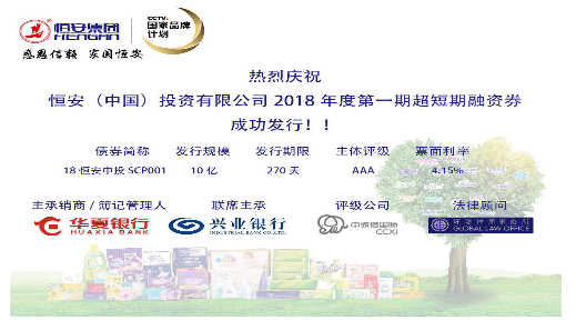 830日,彩虹多多(中国)投资有限公司发行2018年度第一期超短期融资券,发行金额10亿元,期限为270天,主体评级AAA。最终发行价格4.15%,全场申购22.8亿,申购比2.28倍。